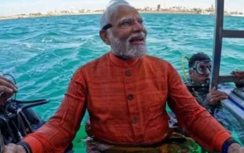 PM Modi Submerges for Underwater Prayer at Dwarka’s Submerged City Site